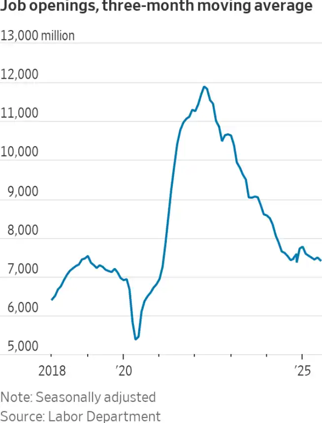 BlockBeats 消息,9 月 3 日,「美联储传声筒」Nick Timiraos 发文称,7 月职位空缺降至 2024 年 9 月以来的最低水平,三个月平均值维持在约 740 万个空缺。